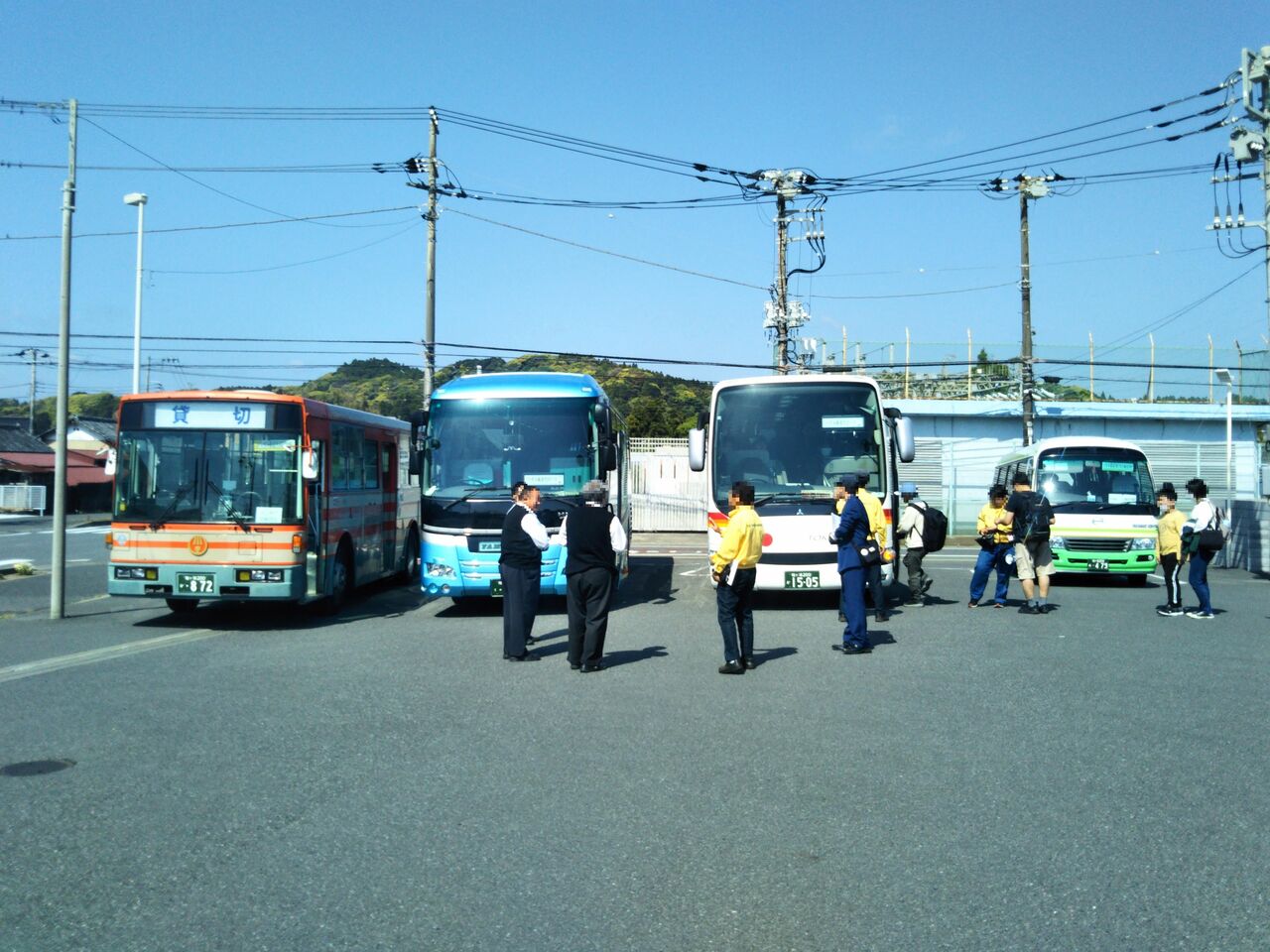いすみ鉄道公式ホームページで臨時急行代行バス「ありがとう キハ52 125号」に接続と案内されていた新宿わかしお1号からでは実際には同バス1号車に数名だけぎりぎり乗車することが出来、それ以降は続行便への乗車となりました。上の写真と同じく大原駅代行バスのりばで撮影した4台のバス。一番右は代行バス定期便3便で幻の木原線号や台風13号運休時でもいすみ鉄道代行バスを担当した高崎交通の担当。一番左は小湊鉄道(バス)担当便。左から二番目はかつうらビッグひな祭り開催時に勝浦・御宿ひなめぐりシャトルバスを運行した山口運送担当便。小湊鉄道と山口運送が続行便となったようです。