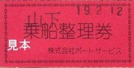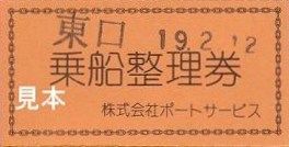 《乗船整理券》※千切り式の軟券。小児専用券は無く『(○囲み)小』の押印。