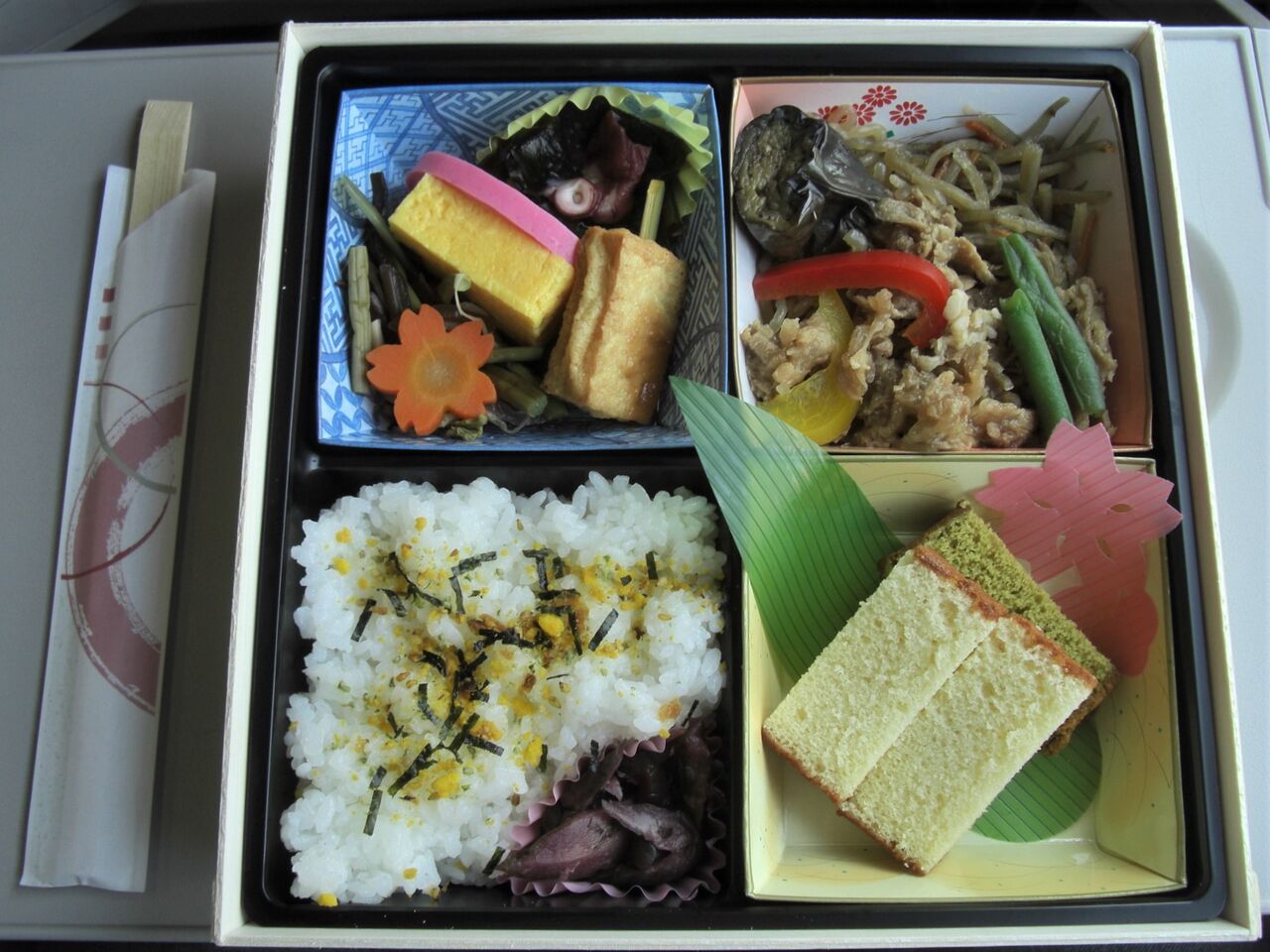 写真右は中身。量は多くないですが、幕の内弁当の様な構成は良いです。赤身の肉の様であまり舌に脂っこさが残らない感じ。個人的には脂でご飯が進む(と思っている)ので、少し物足りなさを感じましたが、現地ではウケているんだろうな、と思いながら食べました。