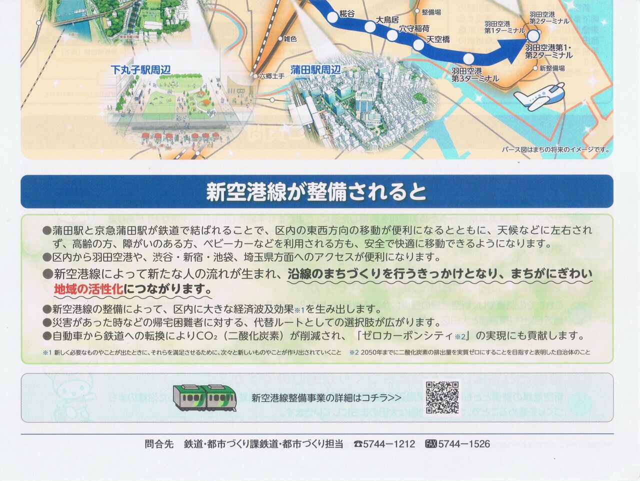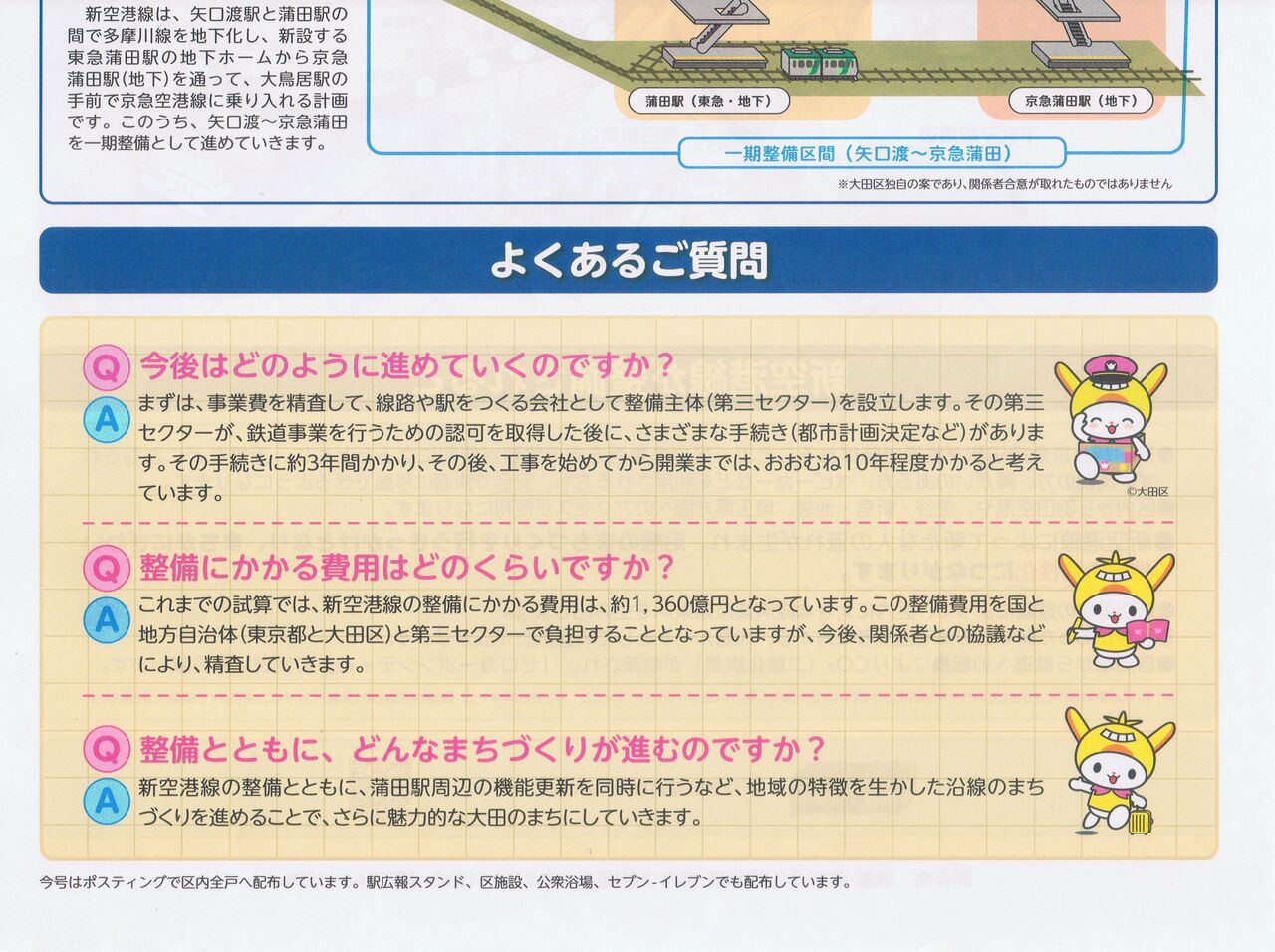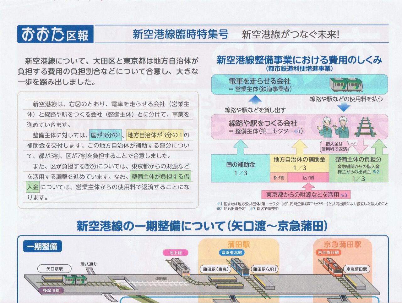 大田区鉄道・都市づくり課が編集した区報の臨時号で、新空港線整備主体(第三セクター)への地方自治体の補助金の負担割合について東京都と合意したことをうけて発行されたものです。