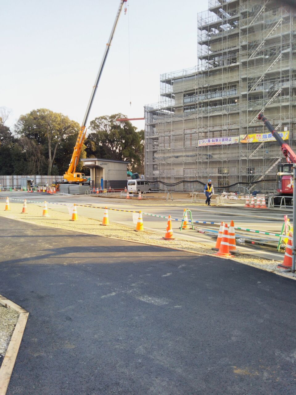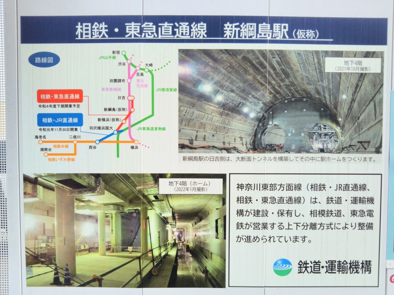 綱島街道に面した新綱島駅工事現場の案内看板です。フェンスの向こうに新綱島駅の入口が見えますが、あと12日で開業する様な感じには見えず。