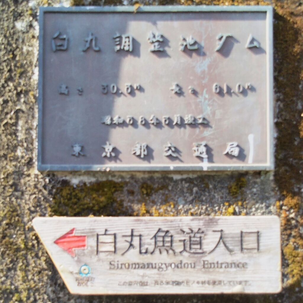 JRの臨時特急列車・おうめ93号(青梅奥多摩梅の里号)とホリデー快速あきがわ2号乗車の旅で青梅・五日市線沿線を訪問。たまたま奥多摩町観光案内所にて『白丸調整池ダム・多摩川第三発電所運用開始60周年記念企画』を知り訪問しました。写真左は下流側(鳩ノ巣駅側)から撮影。