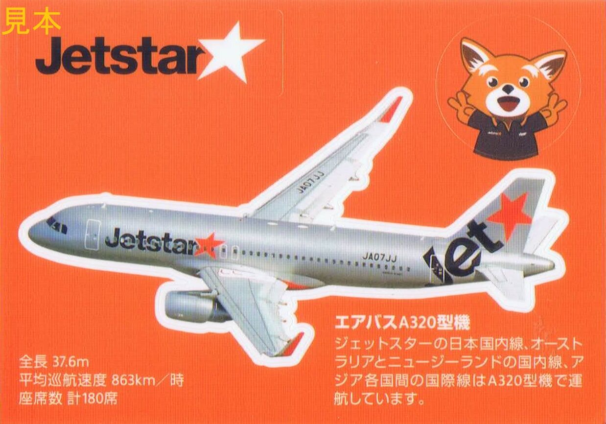 成田=福岡線搭乗時の記念品です。機材とジェットスター公式キャラクターの『ジェッ太』(レッサーパンダ)のデザインで、お子様にも喜ばれそうです。機内で希望者に配布される記念品は以上で、ポストカードは成田空港内のジェットスター直営売店等で販売しています。――――――――――――――――――――――――――――――――――――――