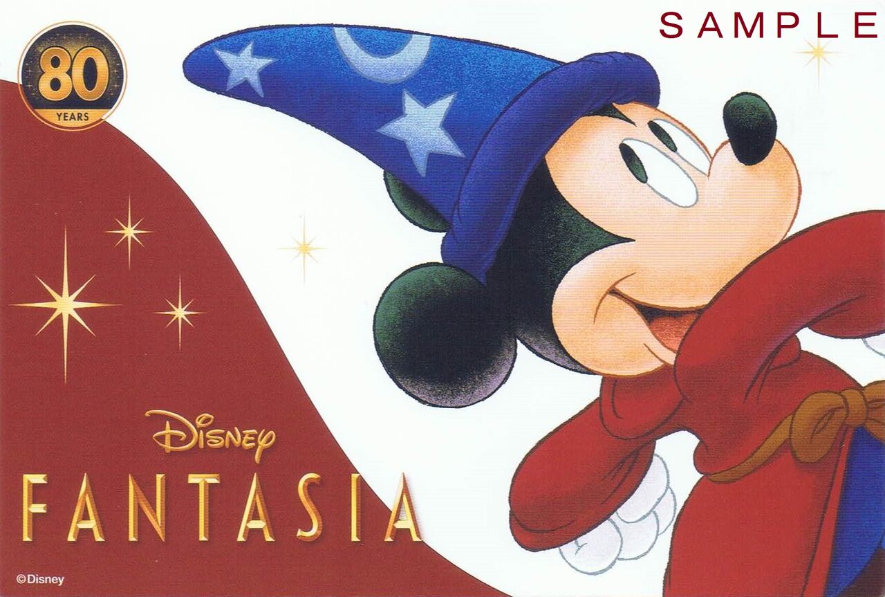 ディズニー映画『ファンタジア』の公開80周年を記念して2020年(令和2年)11月18日〜2022年(令和4年)3月ごろまでJAL国内線にて運航予定の特別デザイン機『JAL DREAM EXPRESS FANTASIA 80(JAL ドリームエクスプレス ファンタジア 80)』関連のポストカード。当該機材以外の国内線でも配布しています。