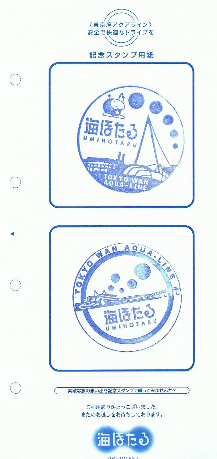 写真左は海ほたるPAの案内コーナー『アクアプラザ』に置いてあった記念スタンプと用紙。