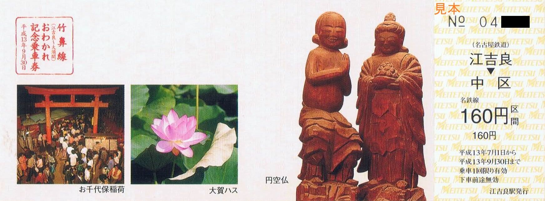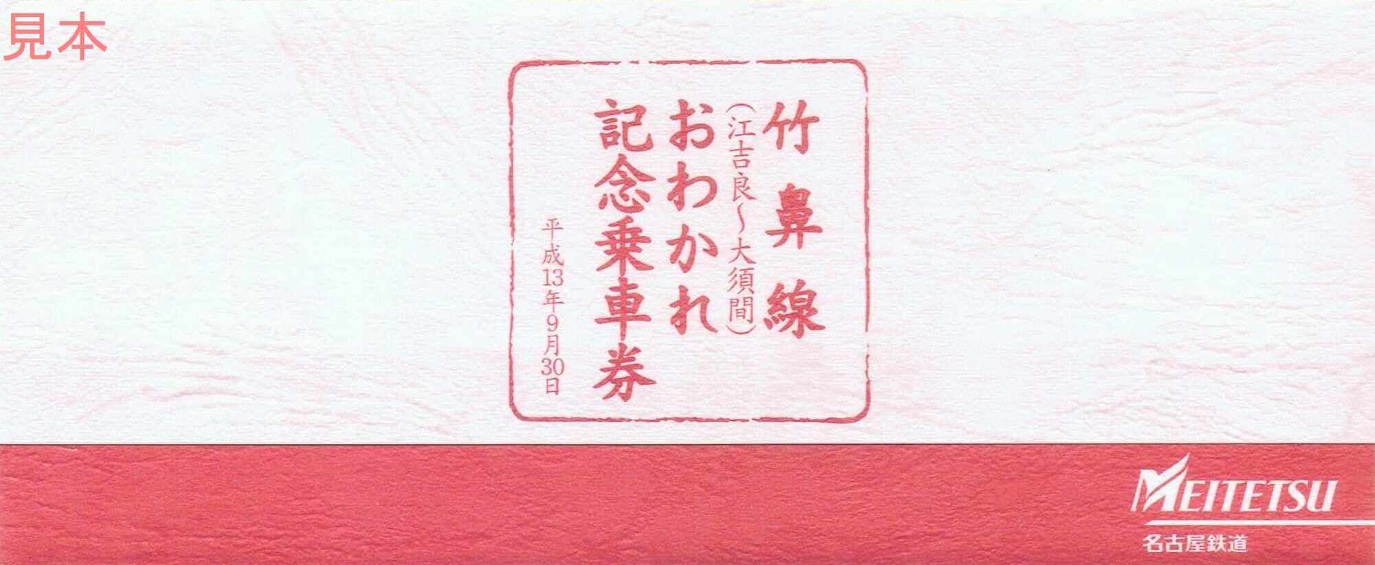 《竹鼻線(江吉良〜大須間)おわかれ記念乗車券(平成13年7月1日発売)》