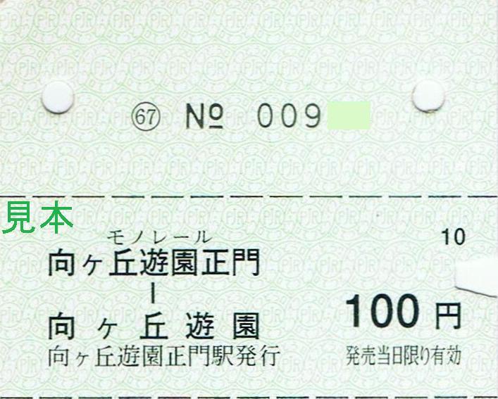 おそらく向ヶ丘遊園モノレール線廃止時のイベントで発売されたであろう乗車券の廃札で、10枚綴りの半硬券乗車券の上部です。同線廃止後、他の大手私鉄系商業施設内で入手しました。地紋の色はピンク色です。