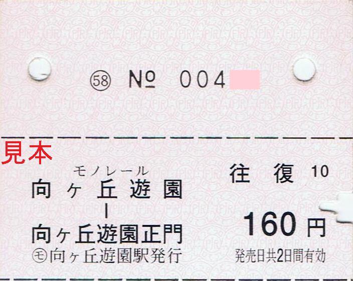 《(モノレール)向ヶ丘遊園駅発行 往復乗車券(大人用)》