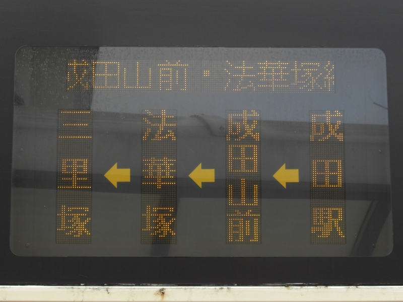 成田駅にて撮影。写真右は側面方向幕の表示。