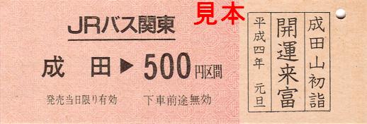 平成4年元旦成田山初詣の記念乗車券。成田から500円区間分のD型硬券乗車券と絵馬がセットになっていました。