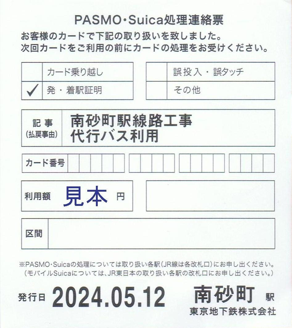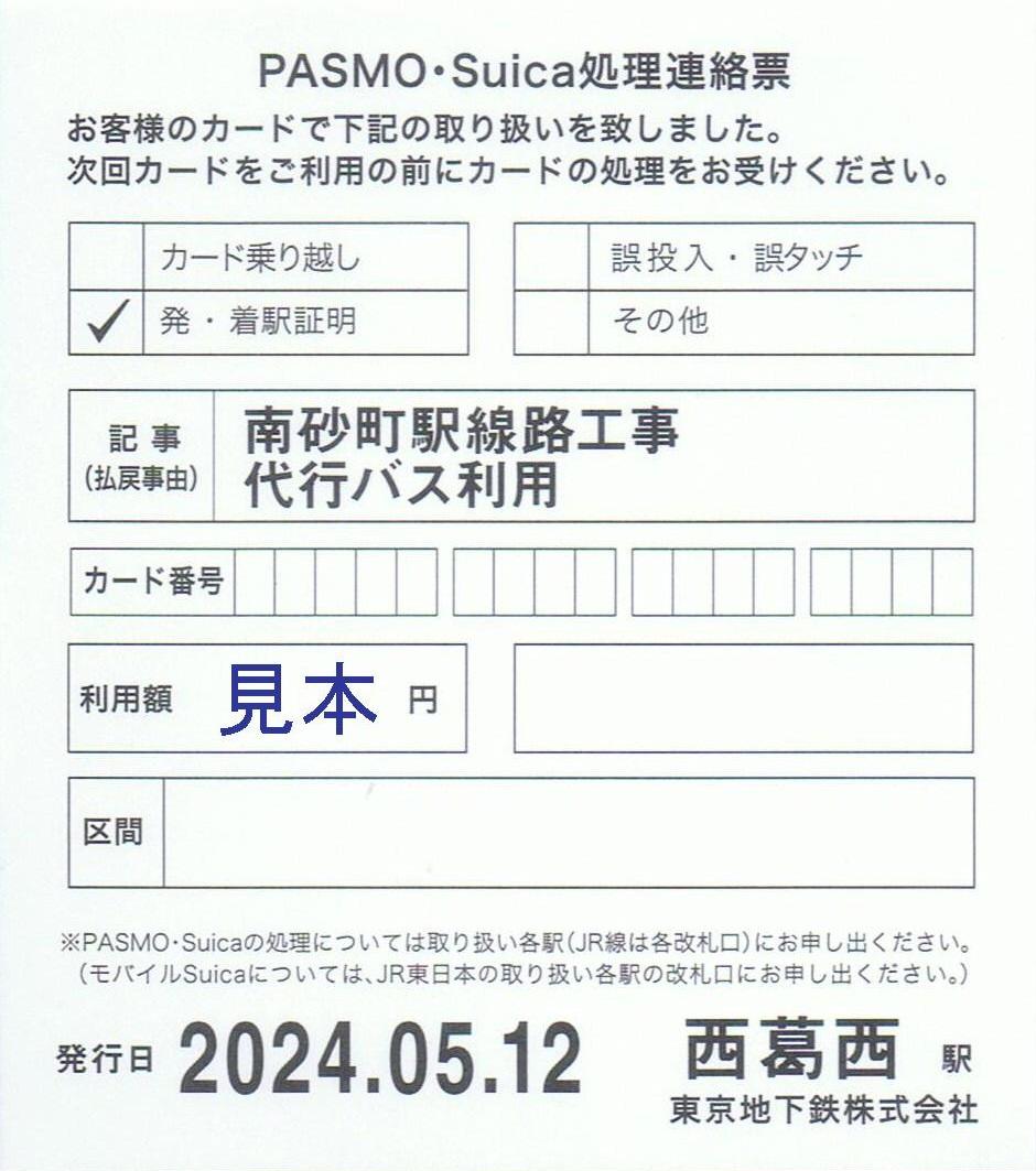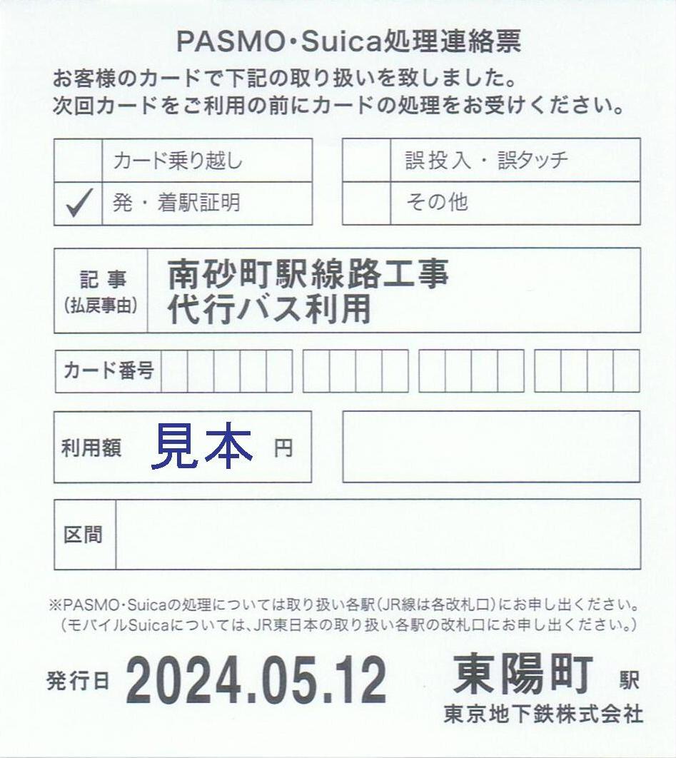 《PASMO・Suica処理連絡票(南砂町駅線路工事代行バス利用)》
