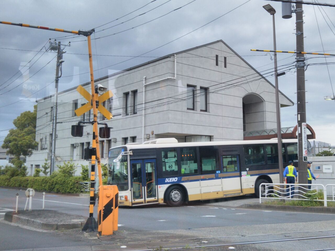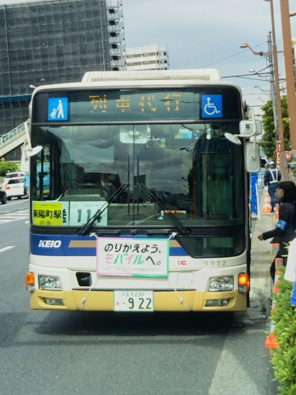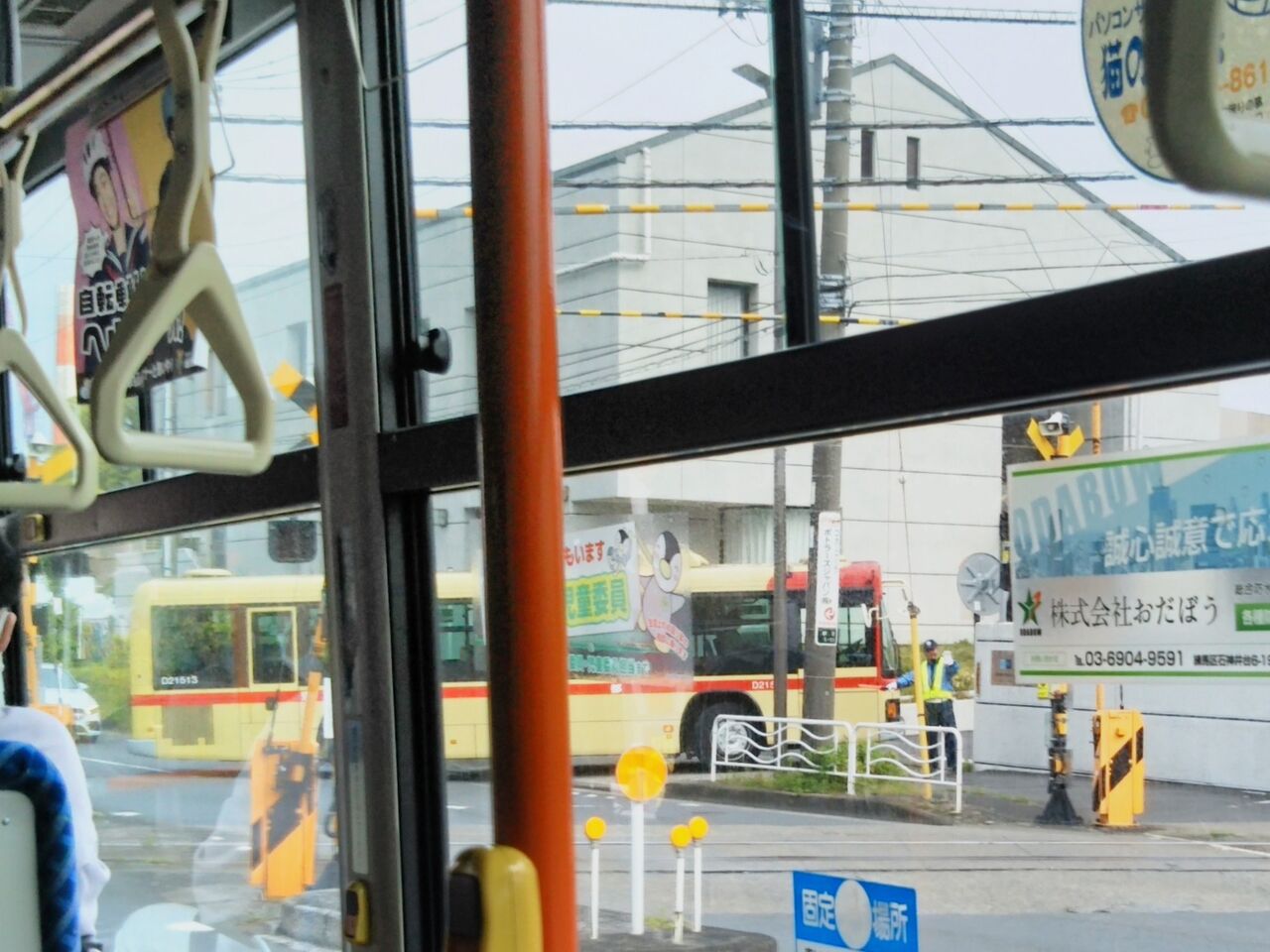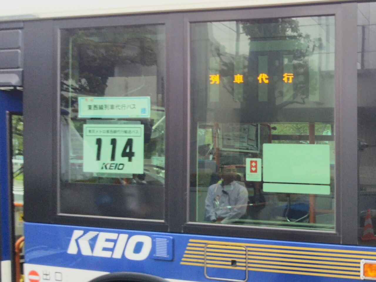 代行バスの基地となる東京メトロ深川総合運動場に入庫する京王バス担当便。これも他社便の代行バス車内から撮影。変わったところでの京王遭遇率が高い。