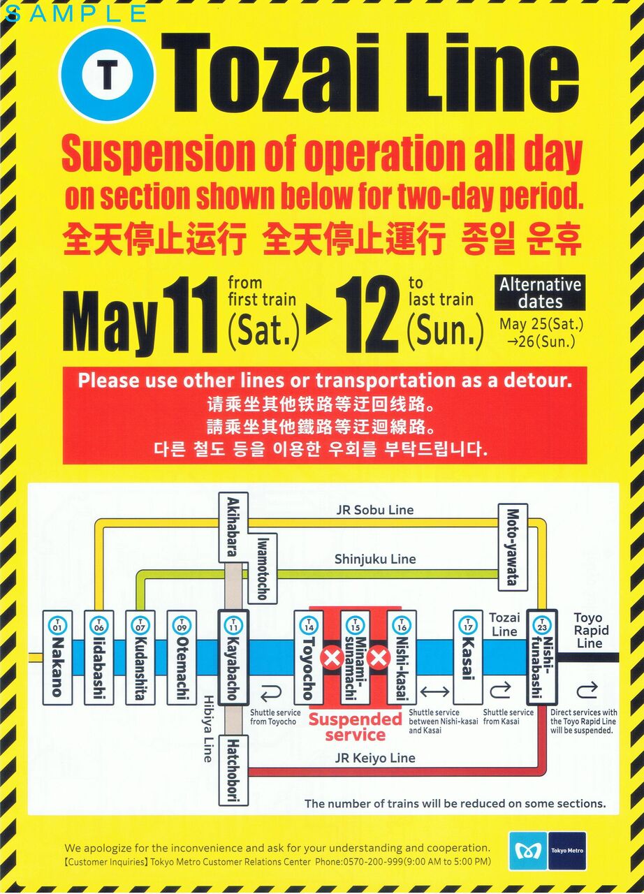 《東西線一部区間終日運休お知らせ(2024年5月11・12日実施)》