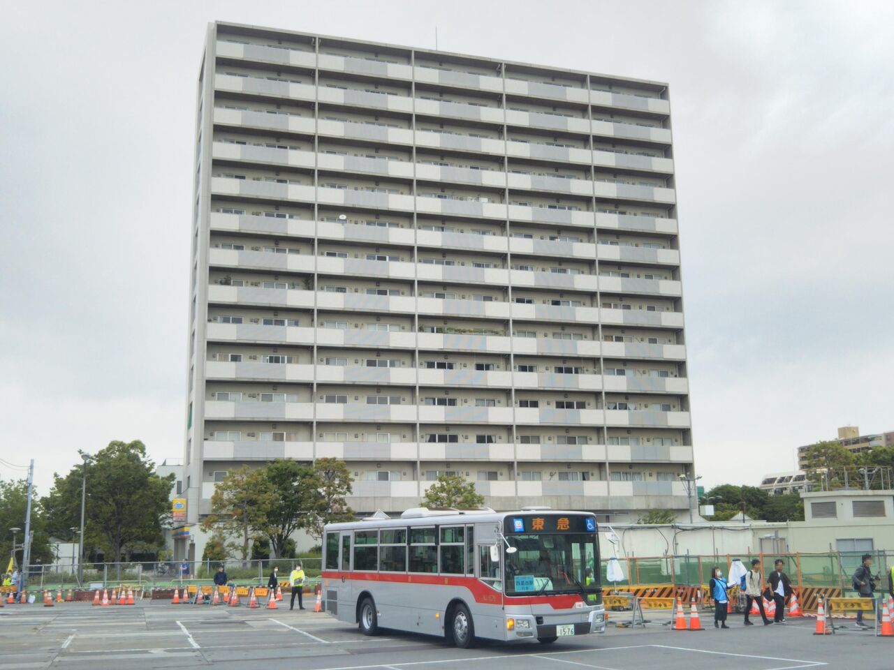 京成タウンバス担当便。東陽町駅降車場にて撮影。同社と東武バスセントラル、京王電鉄バス・京王バスでは各社の補助要員の方が同乗していました。
