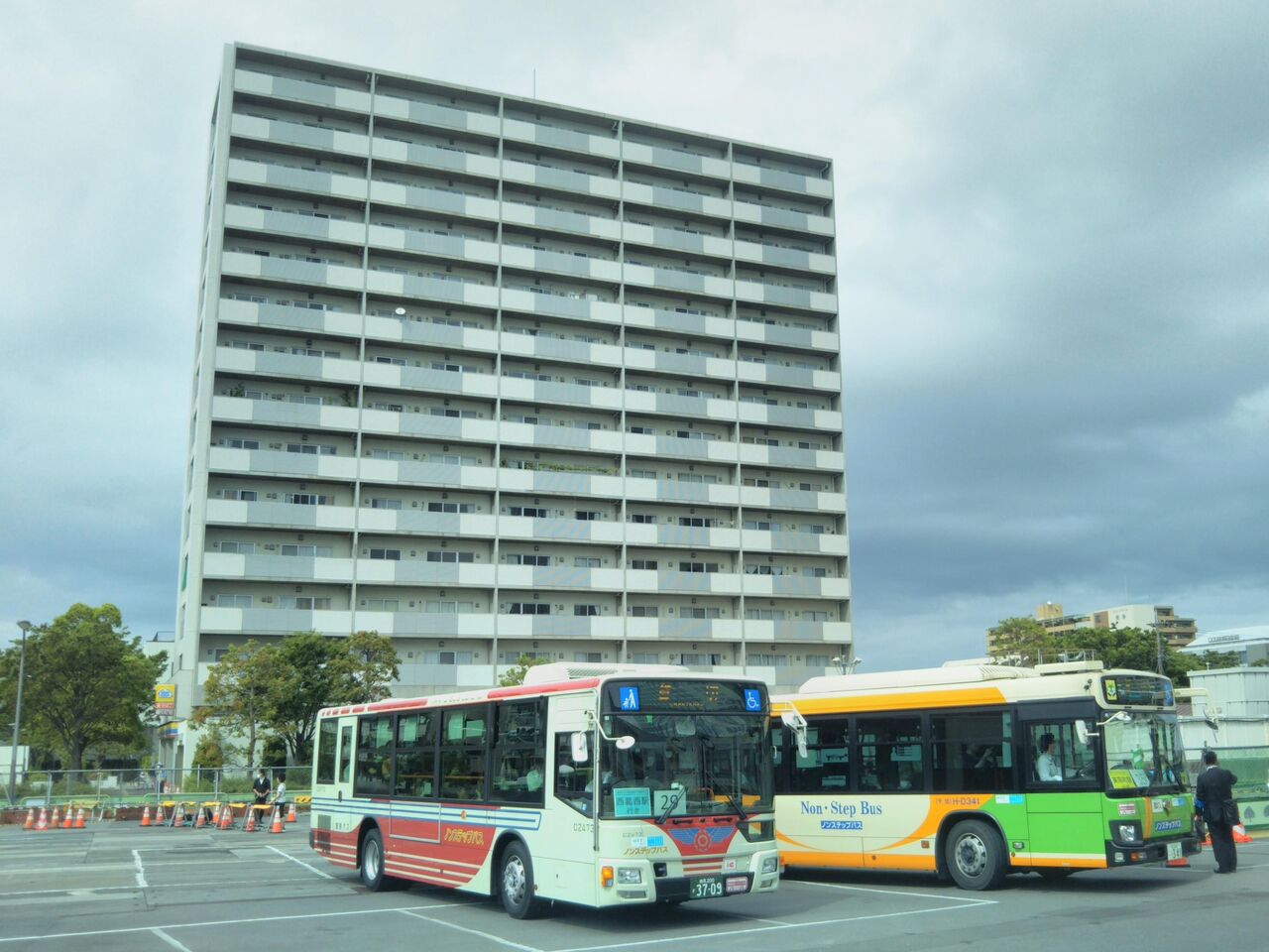 国際興業担当便。南砂町駅乗降場にて撮影。大宮ナンバーの車まで投入されており、いかに広範囲からバスを集めたのか分かります。
