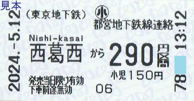 西葛西駅券売機にて購入した都営地下鉄への連絡乗車券。
