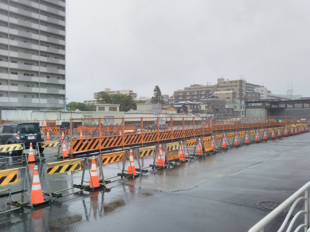 写真右は東西線3番出入口で、バス代行日には同出入口付近で現金にて乗車券販売が行われました。現在の南砂町駅の出入口は東西線一部区間運休前日の終電をもって廃止または休止となるため、バス代行当日は駅構内への出入りが出来ませんでした。