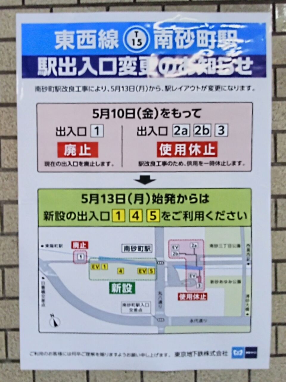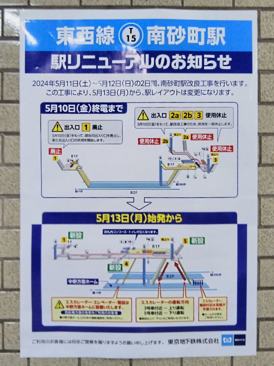 南砂町駅に関してはノーマル版の黄色いポスター以外に工事関連の掲示物も。