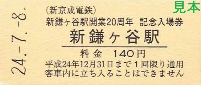 《新鎌ヶ谷駅20周年記念券(平成24年7月8日発売)》