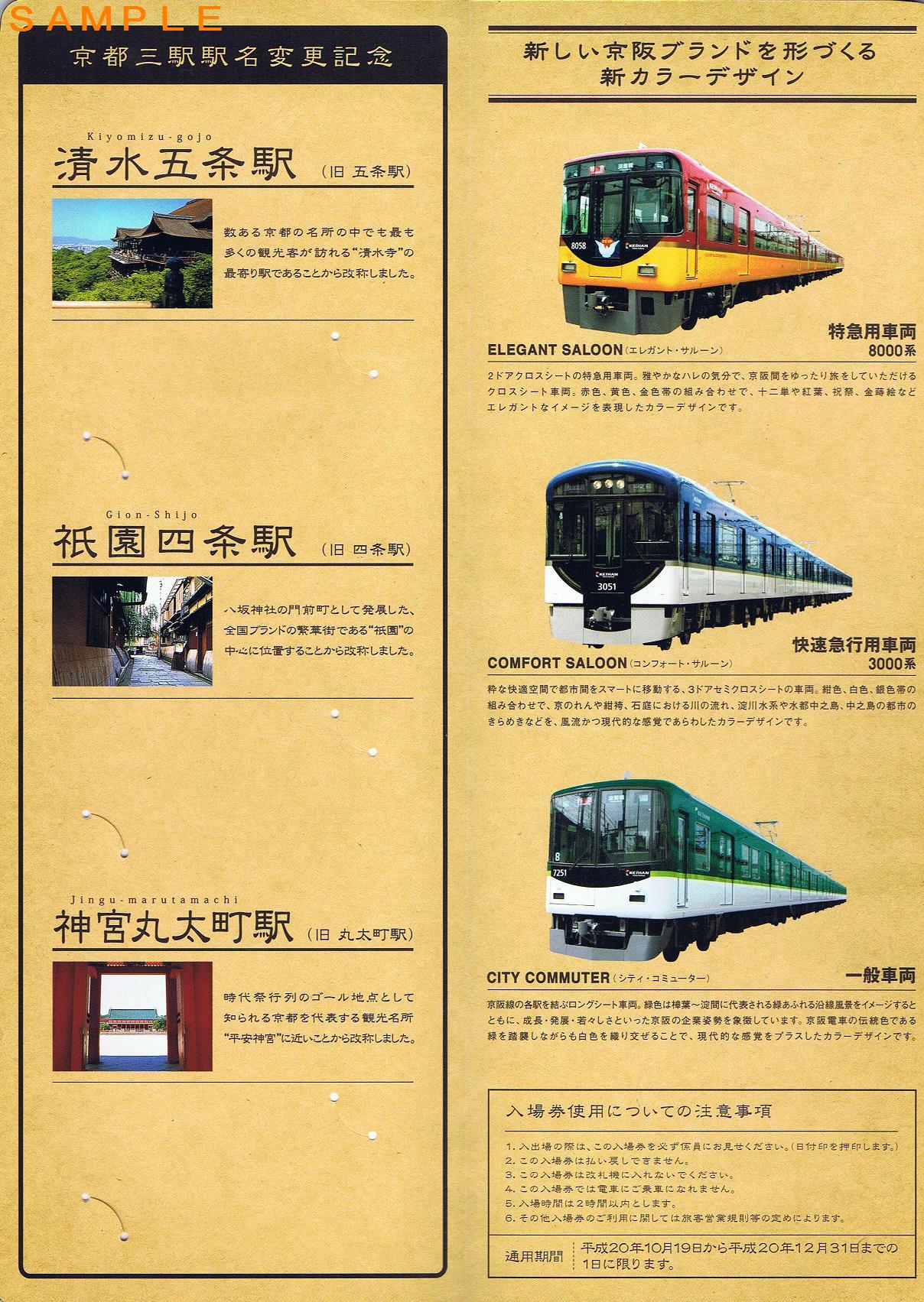 《中之島線開業記念・京都三駅駅名変更記念入場券(※本線分のみ掲載)》