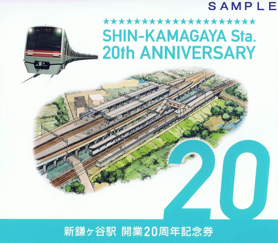 平成23年12月17日から平成24年1月9日までのうち、好きな3日(連続しなくても良い)有効。小児用(500円)は300枚限定。大人用(1,000円)は1,000枚限定で、新鎌ヶ谷、京成津田沼を除く新京成線各駅で発売していました(松戸新田、みのり台、滝不動、習志野、前原は時間限定発売)《新鎌ヶ谷駅20周年記念券(平成24年7月8日発売)》