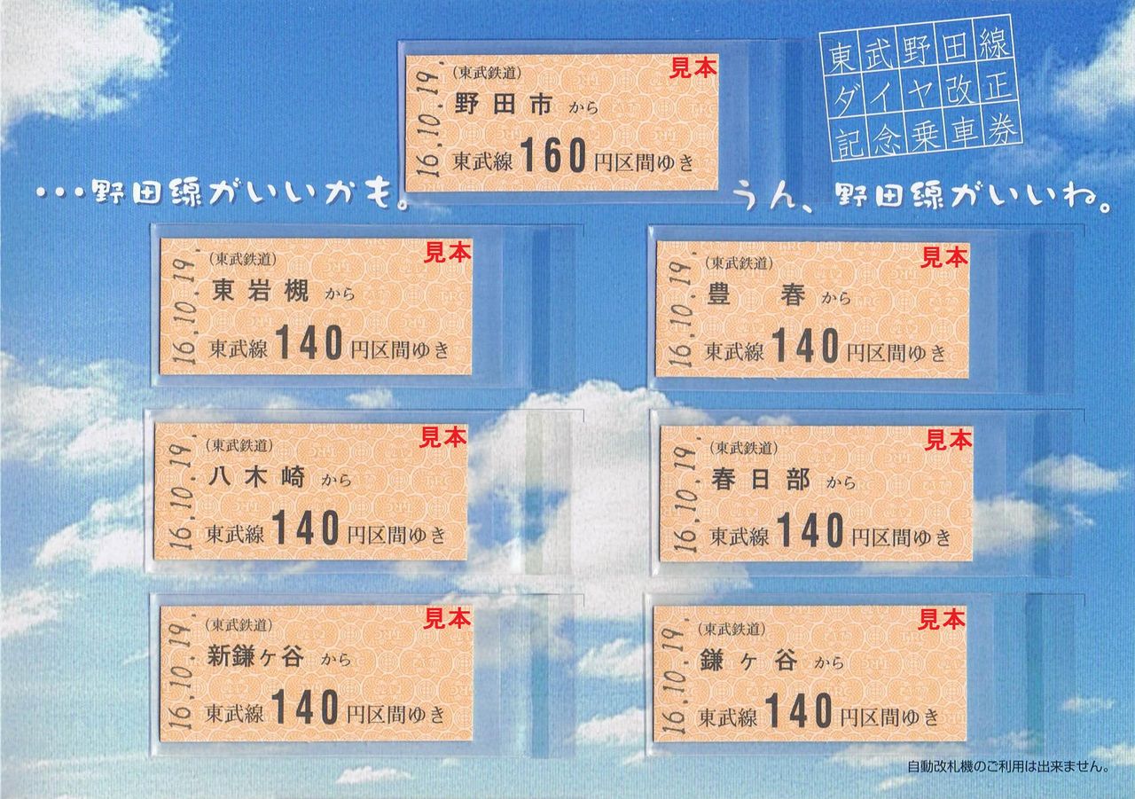 《東武野田線ダイヤ改正記念乗車券(平成16年10月19日)》