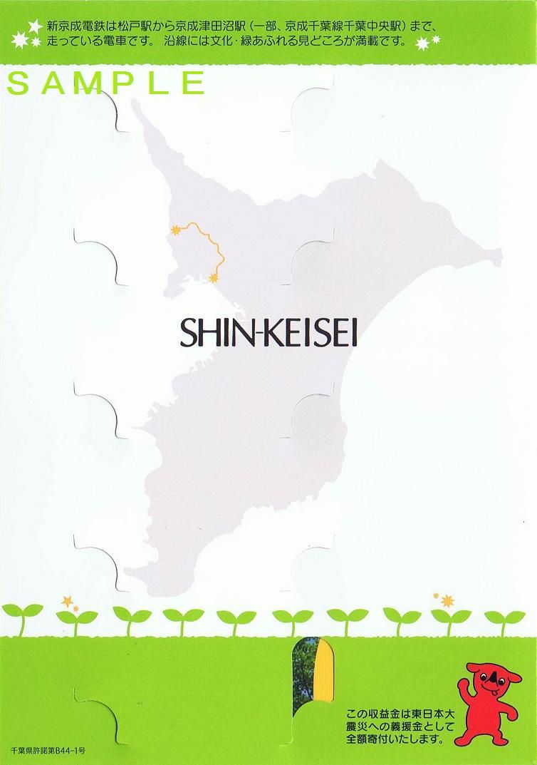 後述の『乗りトク!さくら満開おでかけきっぷ』の発売期間からそれほど時間が経っていませんが早くも新たな企画乗車券を発売しました。平成22年4月29日から5月9日までのうち、好きな3日(連続しなくても良い)有効。小児用(500円)は500枚限定。大人用(1,000円)は1,000枚限定で、新鎌ヶ谷、京成津田沼を除く新京成線各駅で発売していました(松戸新田、習志野、前原は時間限定発売)。《キラリ☆千葉!!東日本大震災復興支援 新京成電鉄5駅入場券セット(平成23年6月)》