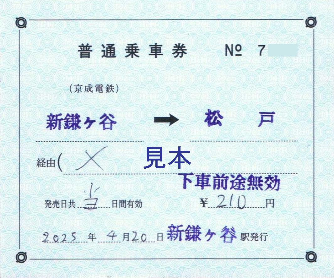 ※2025年09月20日更新(新鎌ケ谷駅券売機券)