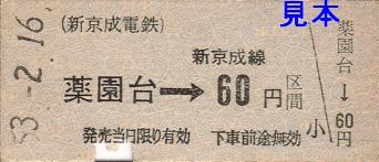 写真左は自社線内(薬円台→60円区間)。写真右は国鉄線への連絡乗車券(八柱から230円 (松戸)→国鉄線170円区間)。