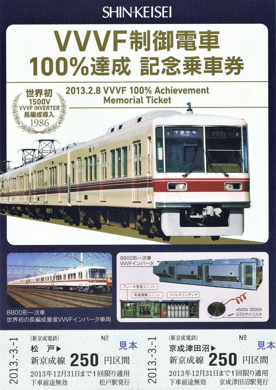 《VVVF制御電車100%達成記念乗車券(平成25年3月1日発売開始)》