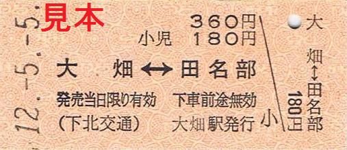 大畑駅発行のB型硬券乗車券(大畑⇔田名部)。鉄道関連会社商業施設のイベントで入手したものです。