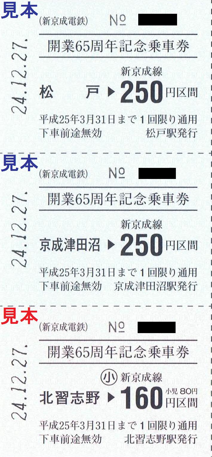 《開業65周年記念乗車券(平成24年12月27日発売)》