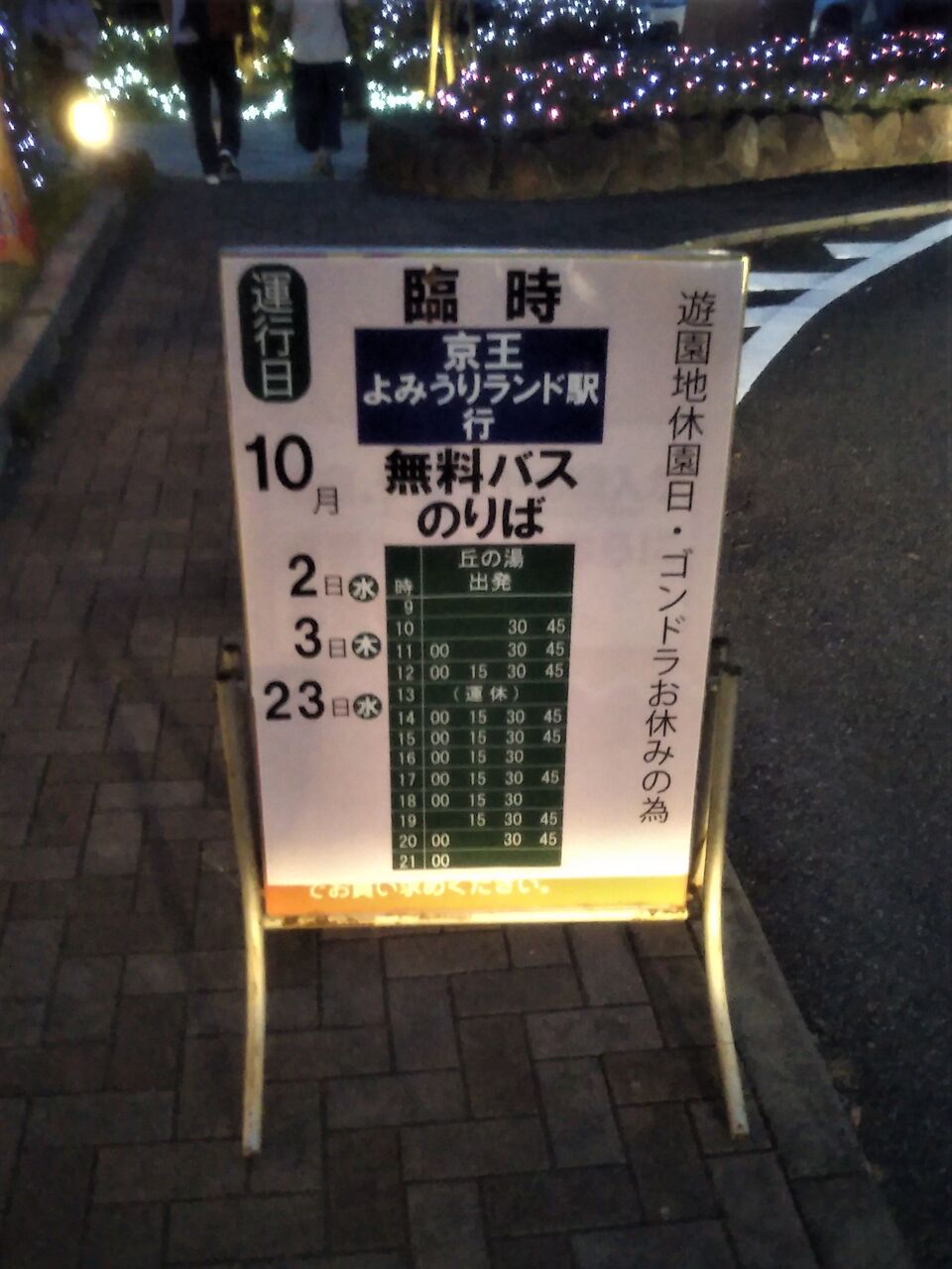 よみうりランド よみうりランド丘の湯臨時無料送迎バス