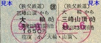 代替バスの乗車券は大輪バス停前のみで発売しており、大輪発の乗車券(片道、往復、割引対応)しか購入できません。三峰山駐車場発の場合、大輪バス停で下車時に現金精算となります。
