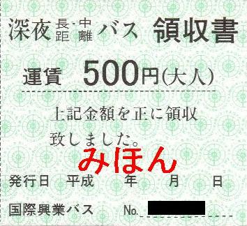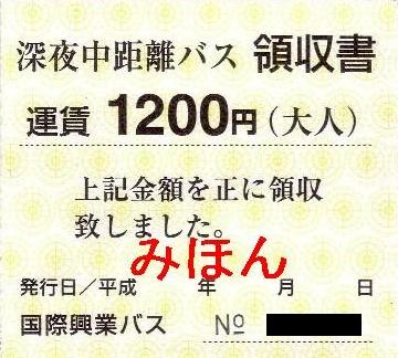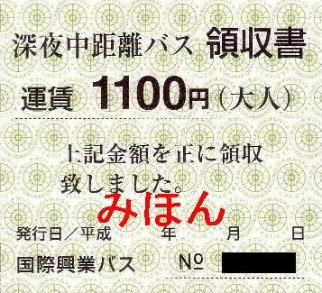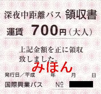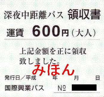 それ以外の運賃は『深夜中距離バス』となっている。どちらが新券かは不明。