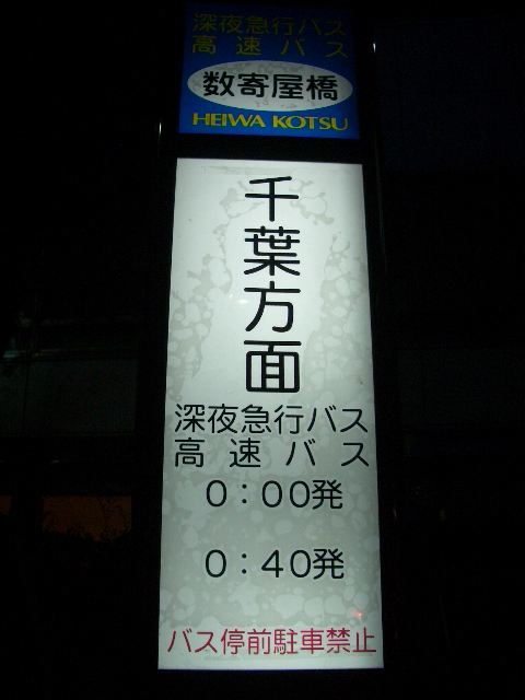 千葉県にある平和交通は東京都内から千葉県方面に深夜急行バスを運行しています(平日運行)。平成17年12月17日当時は