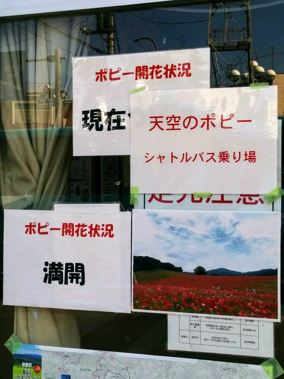 天空のポピーシャトルバスについては、先述の通り、当初は有料の予定でした。しかし、天空のポピースタッフの方から聞いたところ「とてもじゃないけれどお金をいただける状況ではなくて無料にした」との事。往復100円ならば何か乗車券の様なものを準備していたのではないかと思いましたが、それについてもスタッフの方に尋ねましたが「わからない」との事でした。シャトルバスや会場内の案内がボランティアスタッフと思われる方々を中心に行われており、運営方法変更前の情報までは確認できませんでした。