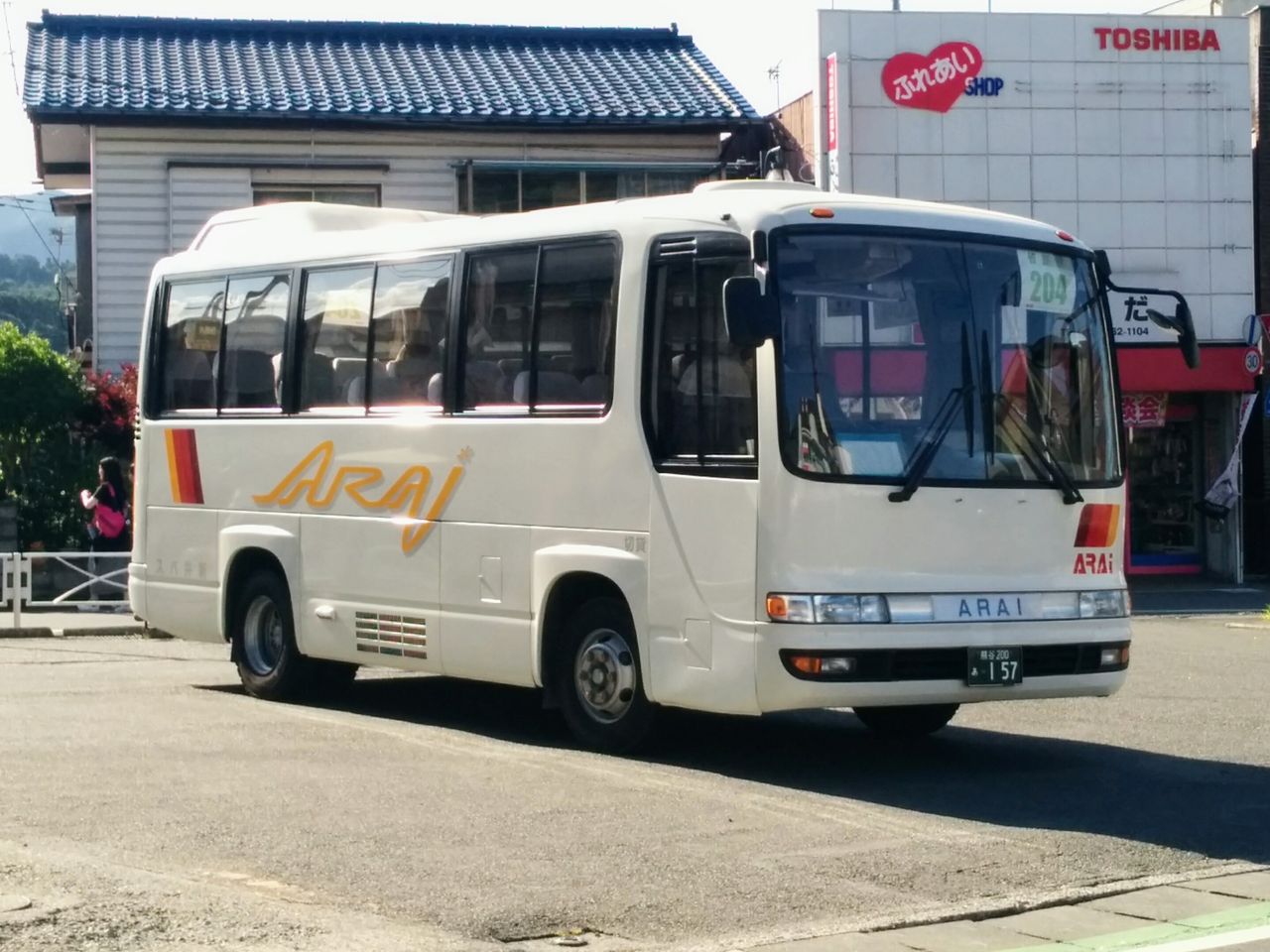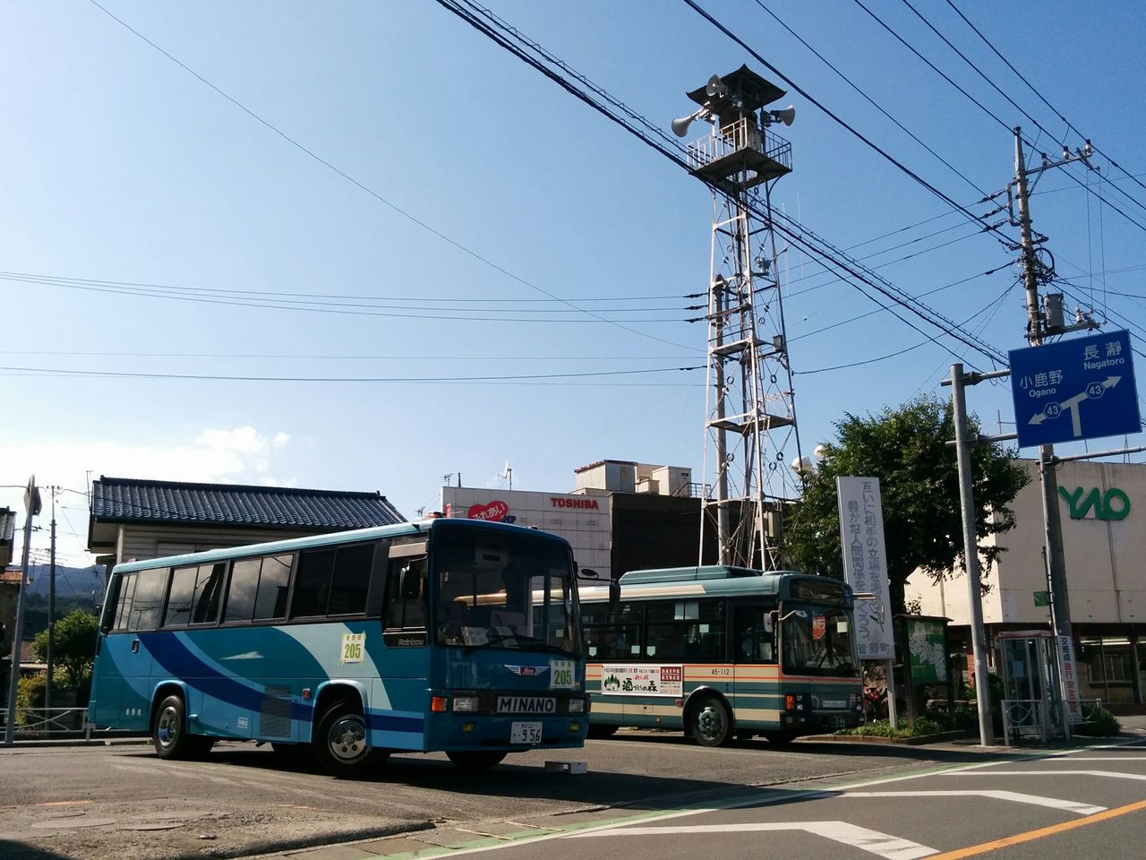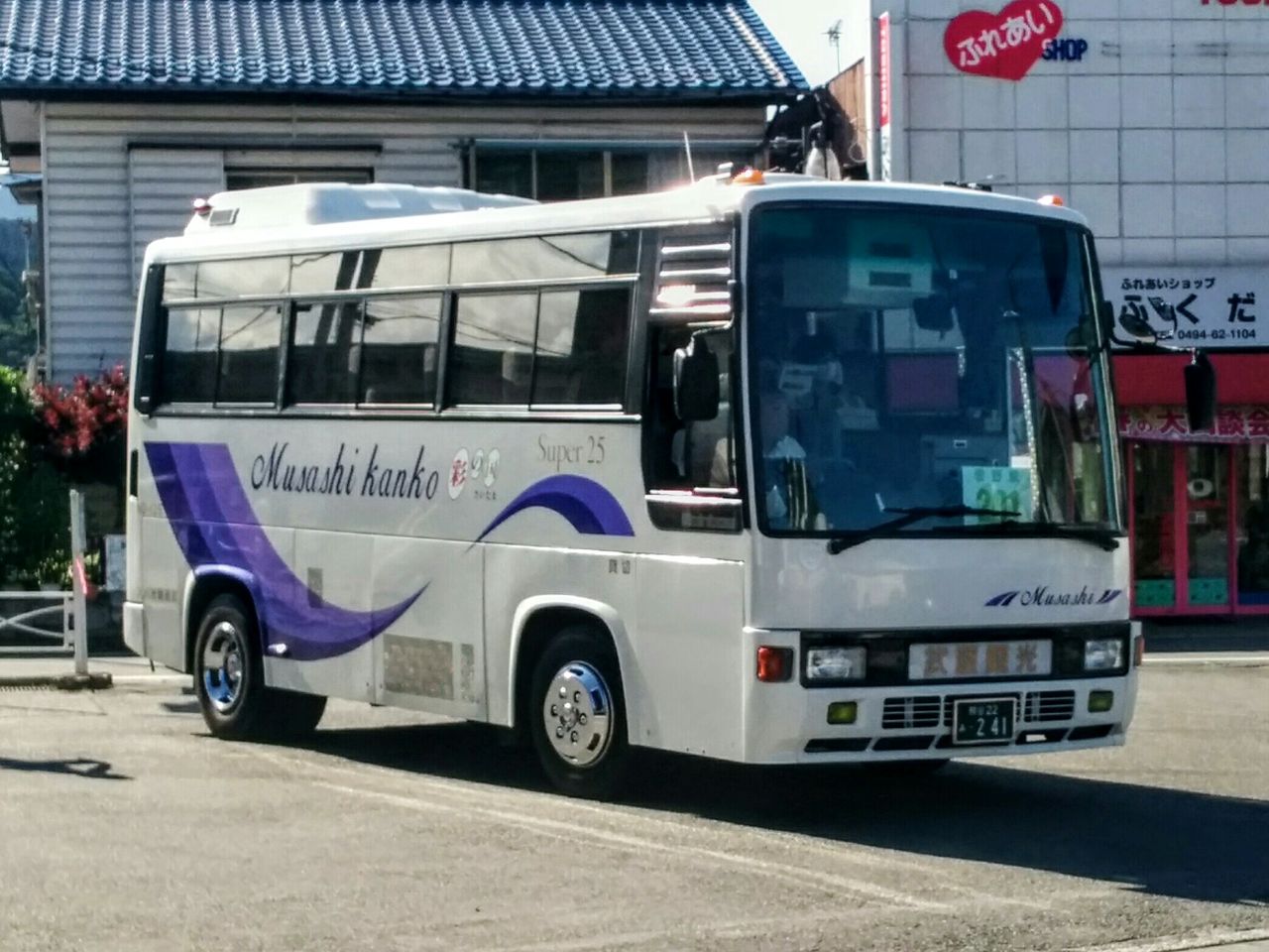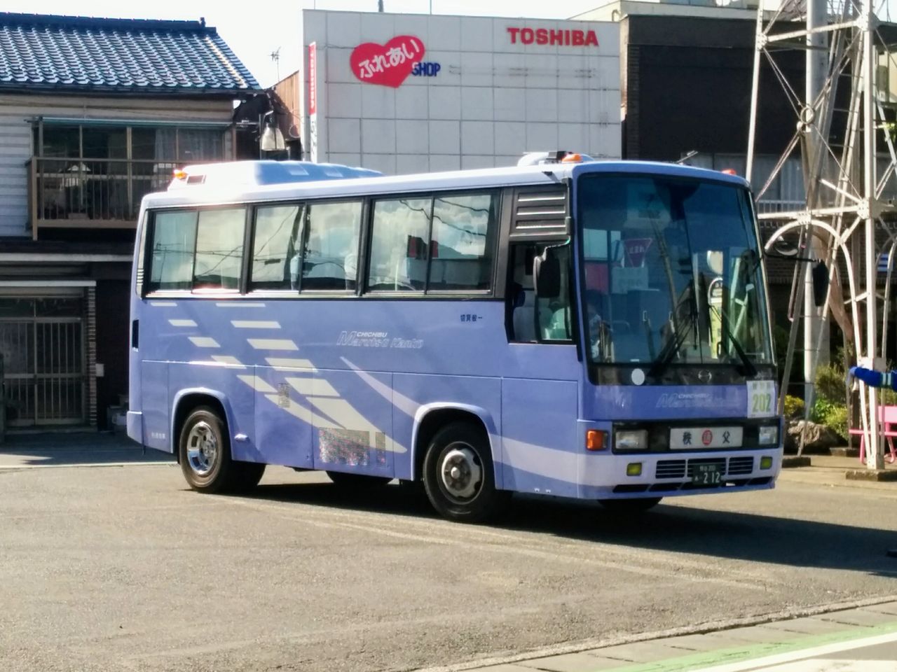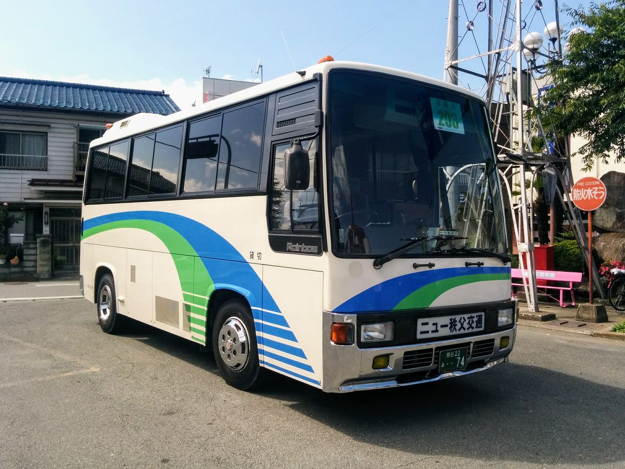 皆野駅前バスターミナルにて。西武観光バス三沢線との並び。復路はこれに乗車しました。通常は町内でのイベント時に使用されるバスだそうです。
