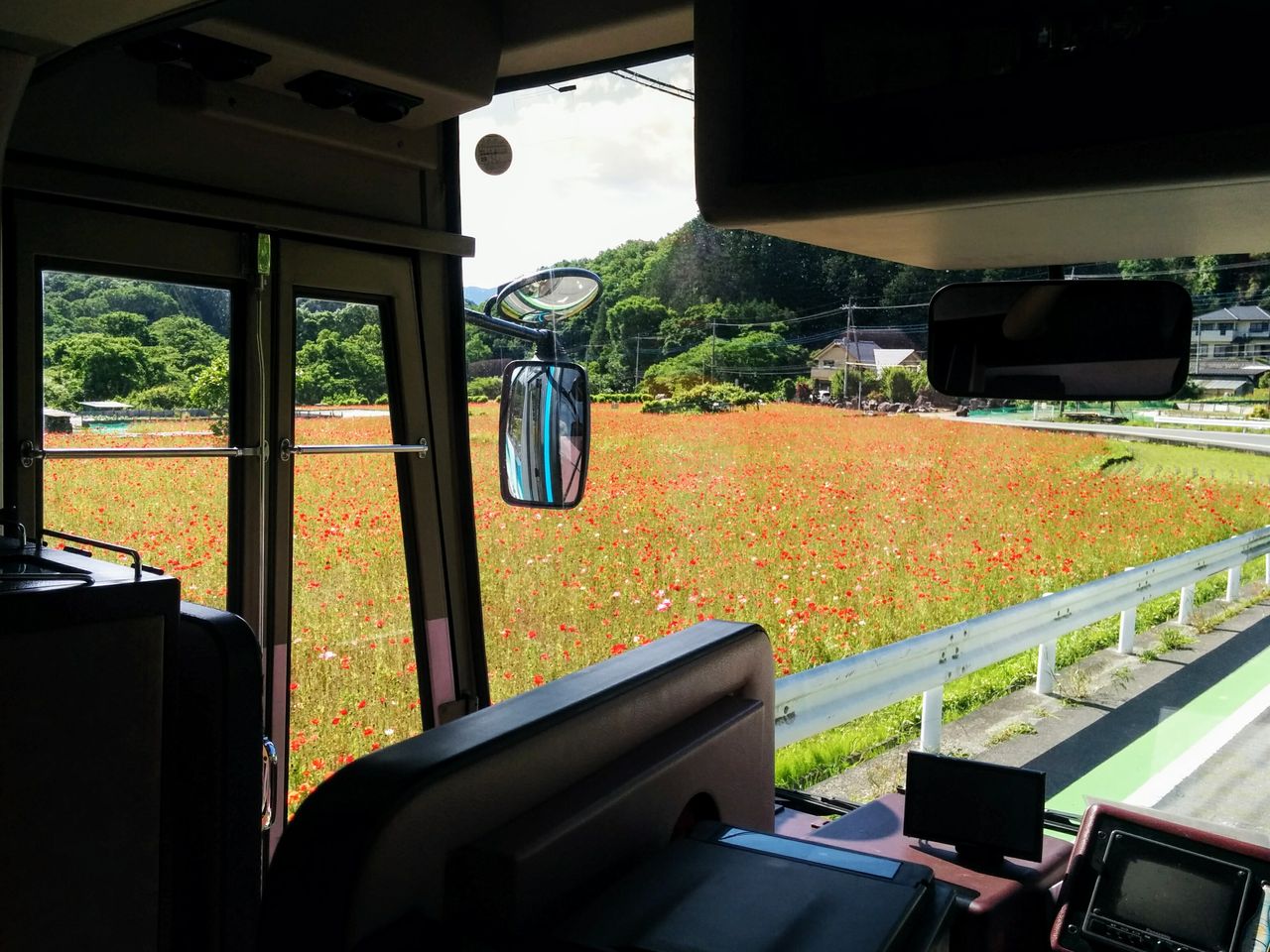 運行経路の途中にもポピーの群生地があり、スタッフの方が案内。また、運転手の方が徐行して下さりました。