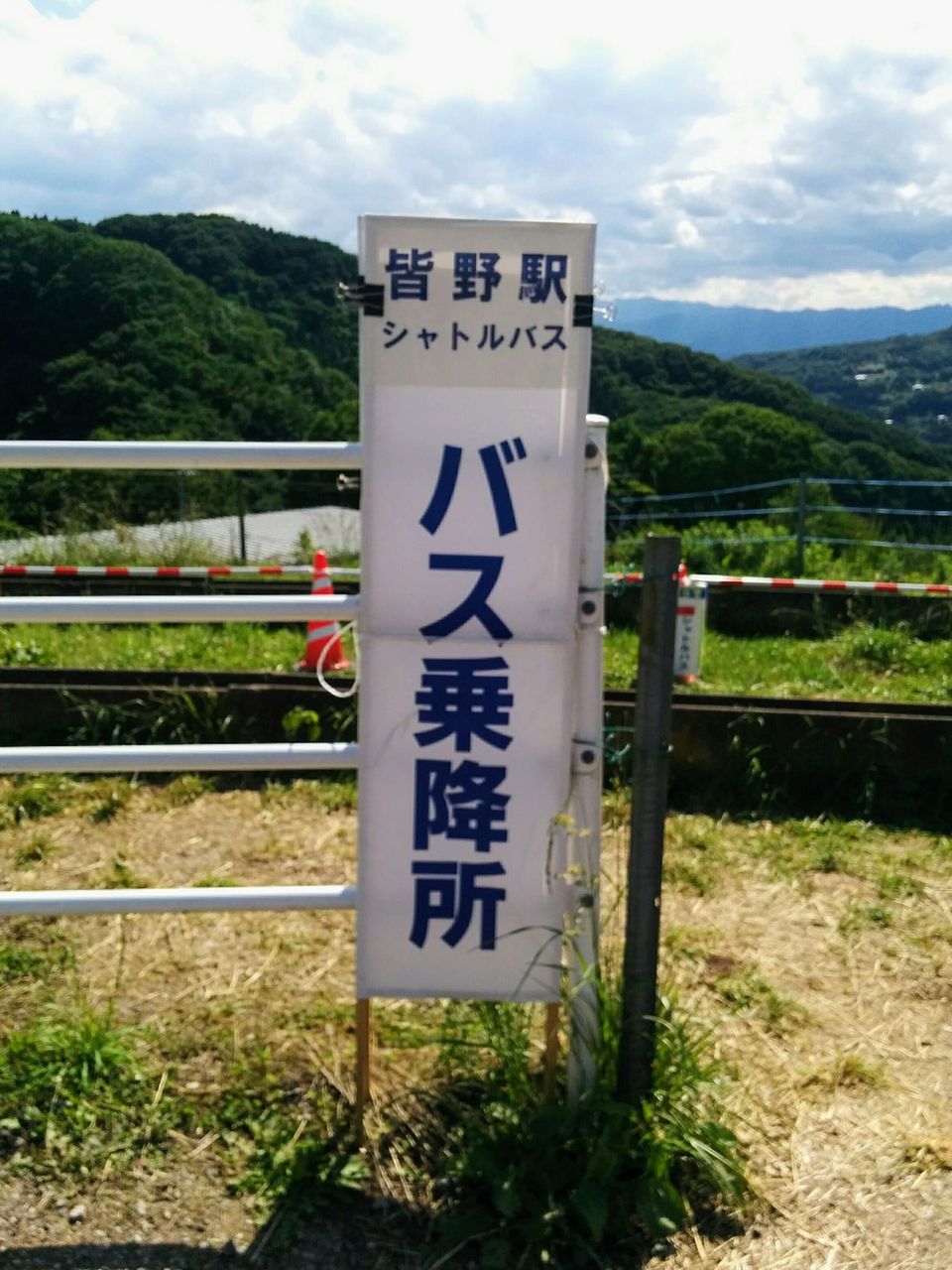 会場の最寄駅となる秩父鉄道皆野駅からは、ポピーまつり実行委員会がチャーターした地元の観光バス会社(201号車=武蔵観光、202号車=秩通商事(秩父丸通観光)、203号車=ニュー秩父交通、204号車=新井バス)と皆野町のバス(205号車。皆野町営バス用ではない観光バスタイプのもの)による天空のポピーシャトルバス(皆野駅前〜天空のポピー(会場)間)が運行されました(※号車数は6月3日に各車に掲出されていた数字です)。