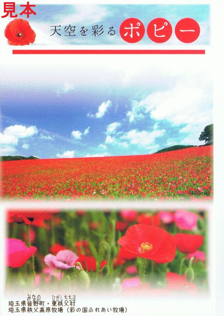 当初の入園料で印刷されていますが、変更となったため、料金部分がパンチで穴を開けられています。天空のポピー会場でシャトルバスを下車すると、そのまま入園券売り場に案内されますので、実質、入園料にシャトルバス代が含まれているといえそうです。なお、マイカー利用の場合は入園口が別の場所になりますが、入園料・入園券は同じ。駐車料金が無料となっています。《ポストカード》