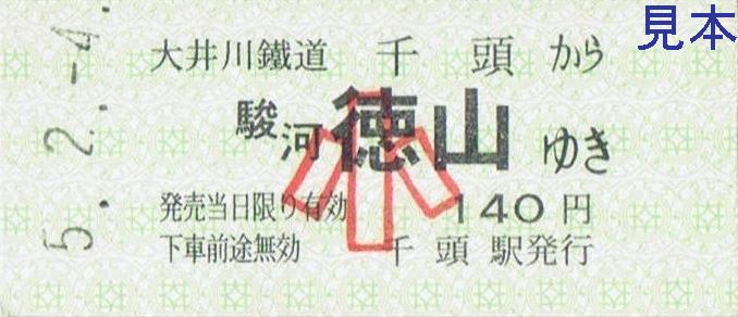 同駅最安の大井川本線(代行バス)区間の硬券乗車券は小児専用券が駿河徳山まで、大人が崎平までのもの。なお、訪問日には現在では運行休止となっている有料電車急行用の硬券急行券も扱っていました。【関連記事】
