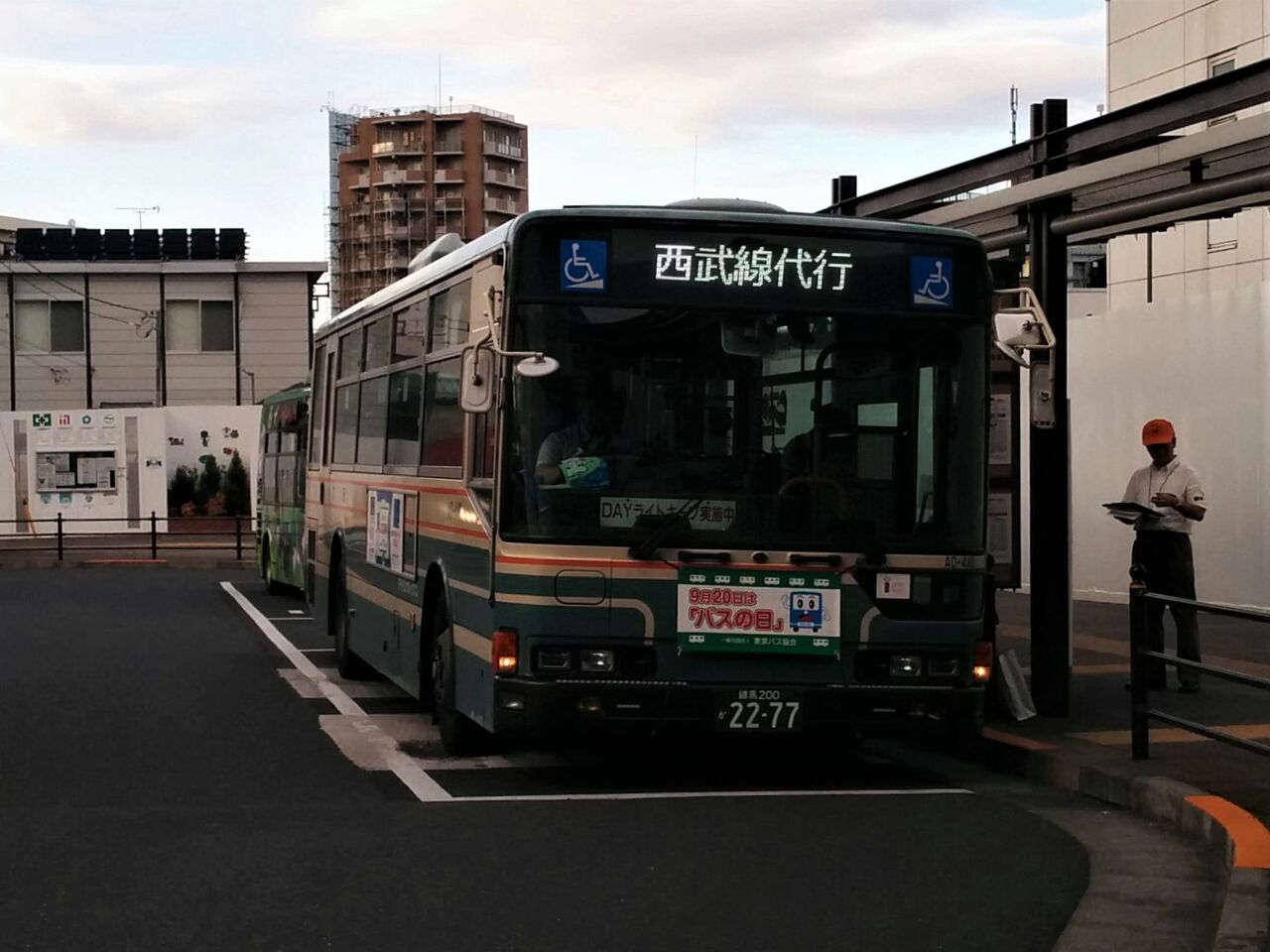 西武バス担当便の方向幕で運行区間は表示されず『西武線代行』のみの表示。
