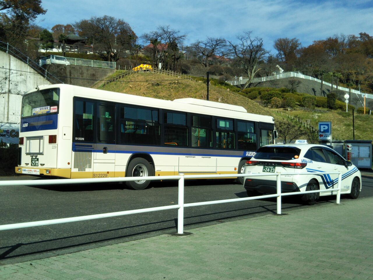 多摩動物公園駅に到着する京王電鉄バス担当便でS12229号車。