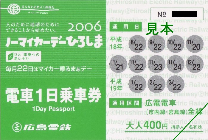 【2006ノーマイカーデーひろしま電車1日乗車券】