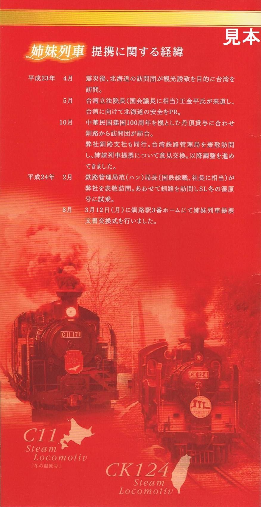 JR北海道 台湾鉄路管理局CK124・SL列車姉妹列車提携