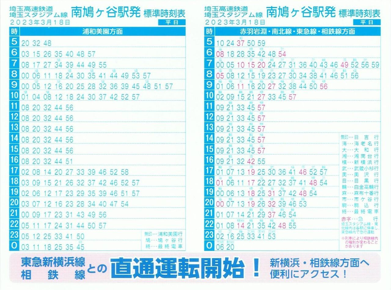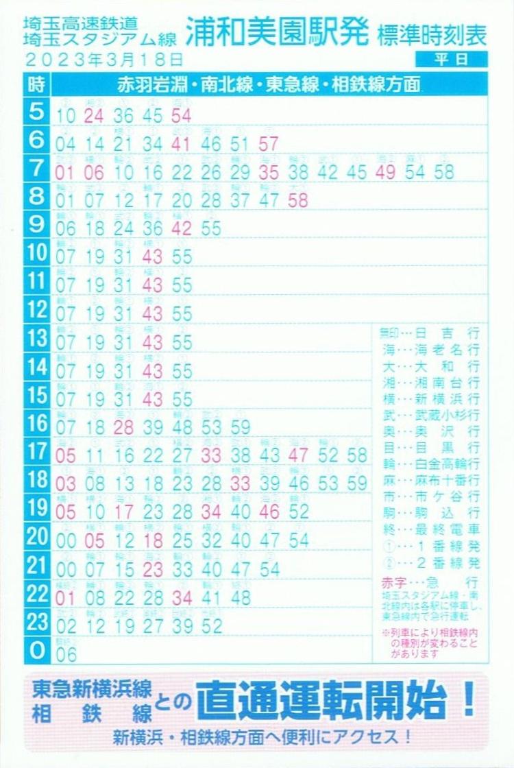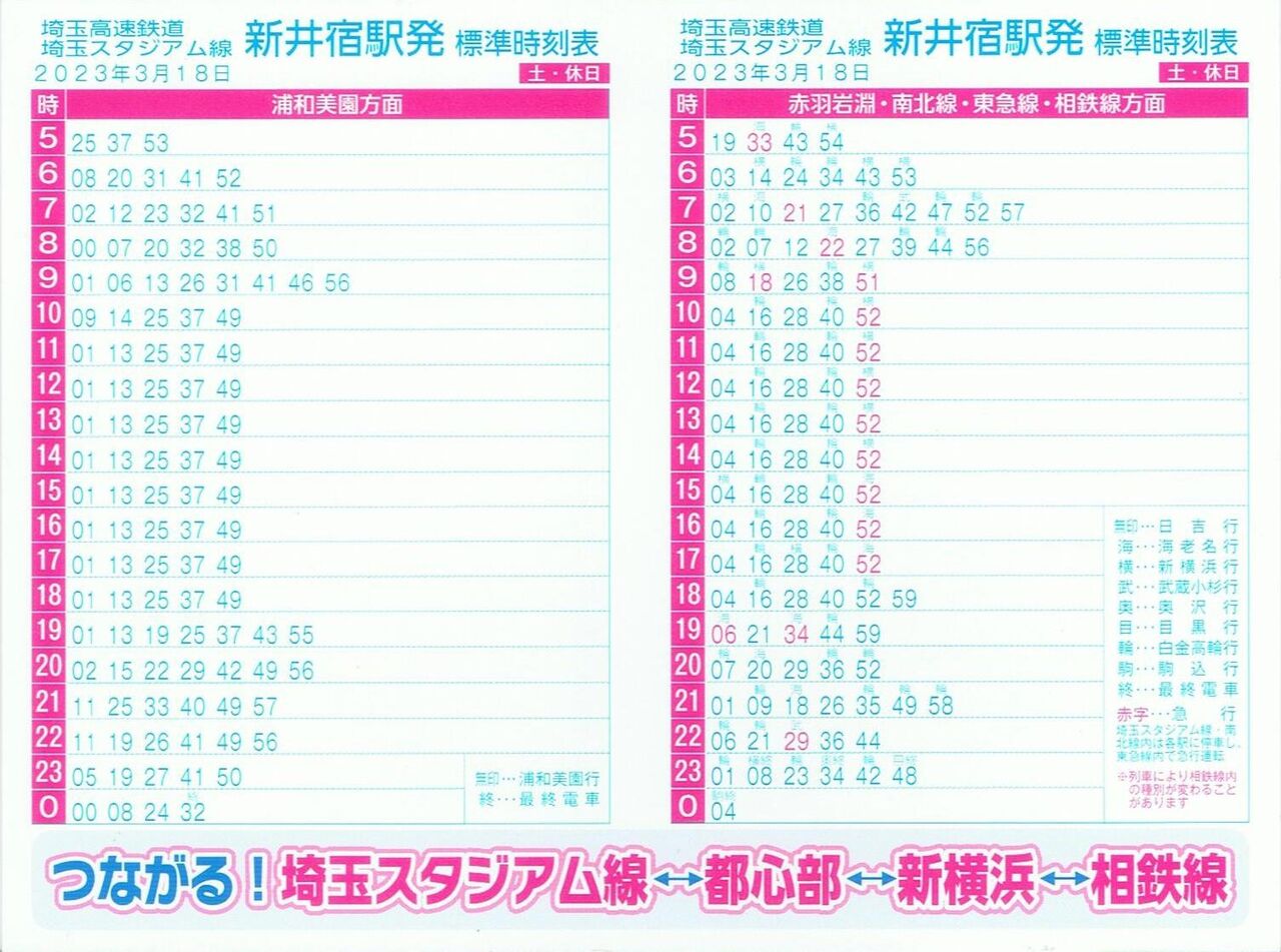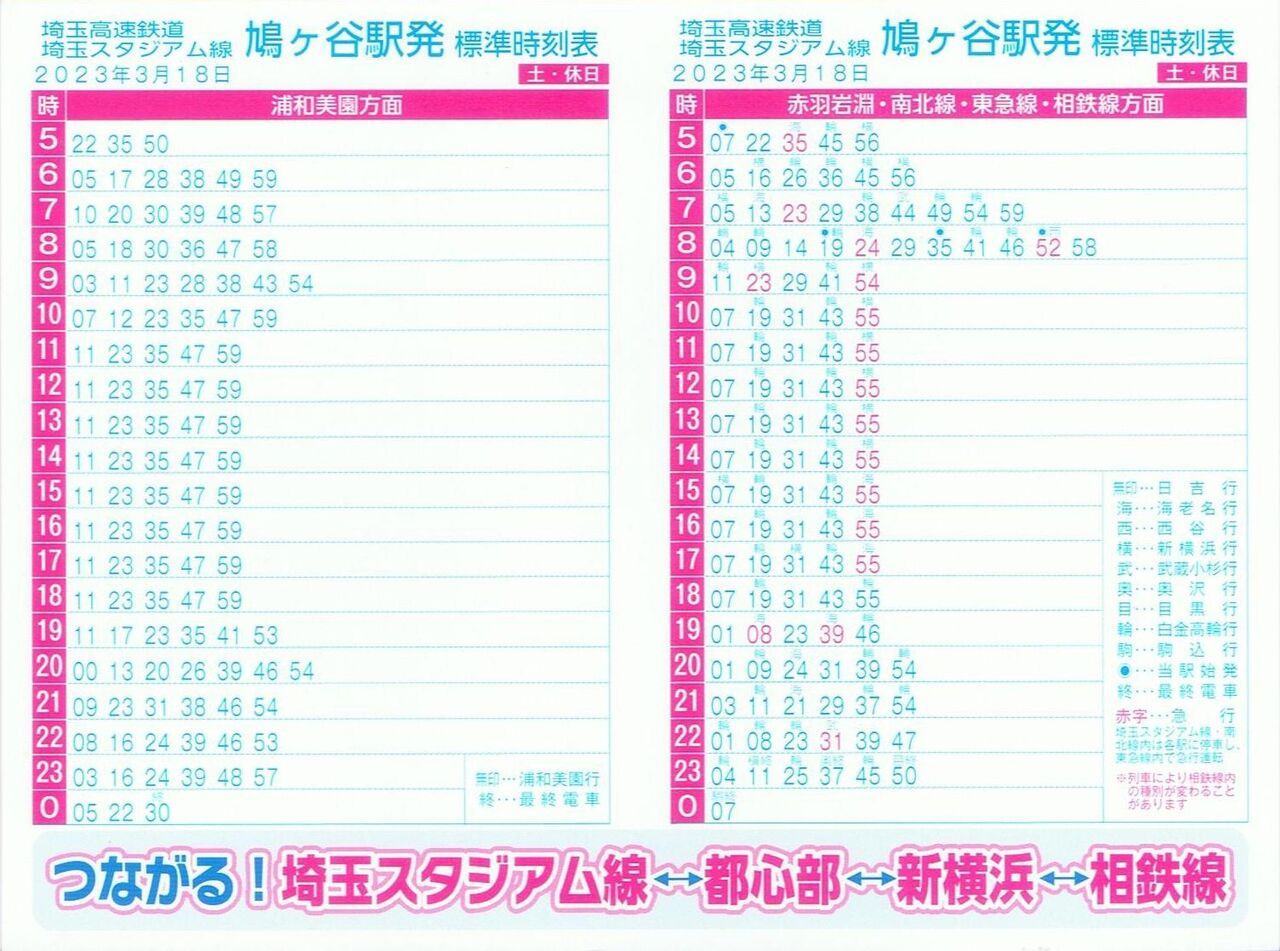 【埼玉高速鉄道埼玉スタジアム線標準時刻表】