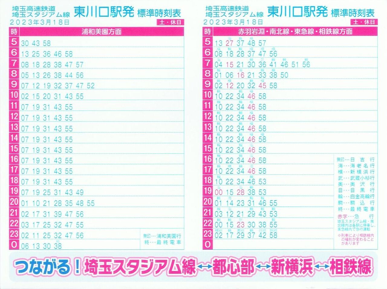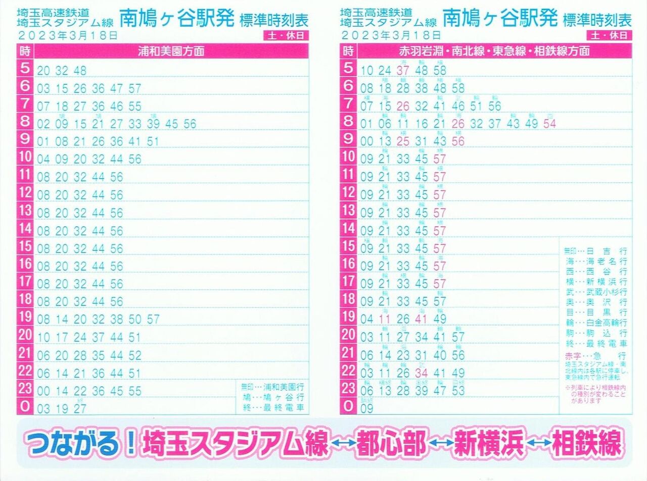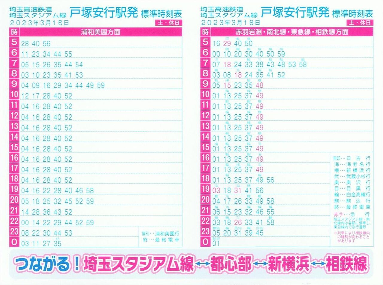 【埼玉高速鉄道埼玉スタジアム線標準時刻表】