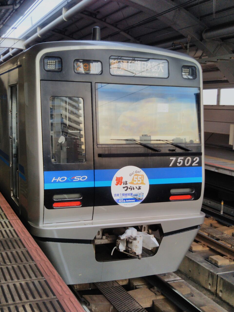 北総鉄道、京成電鉄はシリーズ映画「男はつらいよ」劇場公開55周年を記念して記念乗車券発売・記念ヘッドマーク掲出等の記念企画を実施しています。北総鉄道実施分については北総開発鉄道1期線(北初富〜小室間)の開業45周年も記念しており、2024年(令和6年)10月31日〜2025年(令和7年)3月23日の予定で7500形1編成を使用した記念ヘッドマーク掲出列車を運行しています。運行区間は羽田空港第1・第2ターミナル〜泉岳寺〜押上〜京成高砂〜印旛日本医大(京浜急行電鉄空港線・本線、東京都交通局浅草線、京成電鉄押上線・本線、北総線)で普通列車を中心に快特、特急、急行の運用にも就いています。。