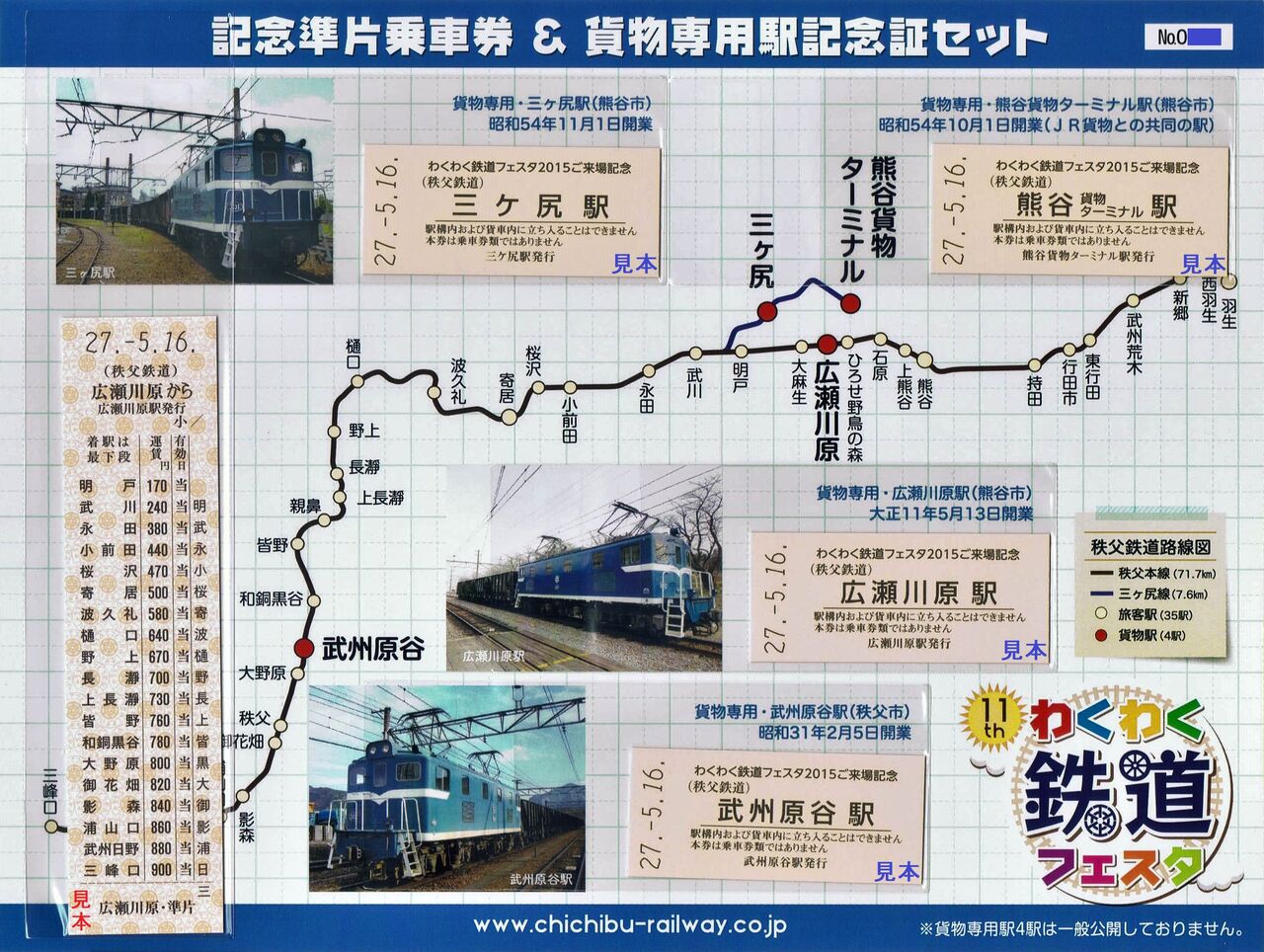 《11thわくわく鉄道フェスタ 記念準片乗車券&貨物専用駅記念証セット(平成27年5月16日発行)》